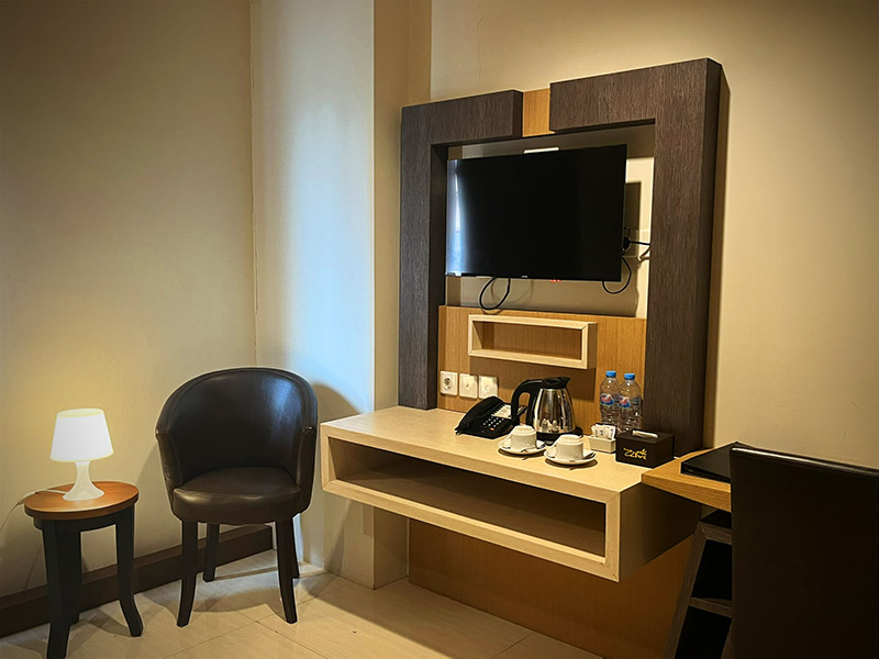 Nikmati juga ketel listrik dengan pilihan kopi dan teh, dua botol air mineral, serta slipper dan laundry bag untuk menambah kenyamanan selama tinggal.