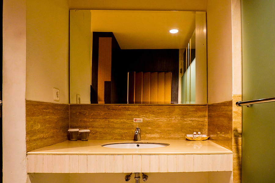 Kamar dilengkapi TV 32 inci, AC, Wi-Fi, serta telepon untuk memenuhi kebutuhan selama menginap. Amenities kamar mandi disiapkan lengkap—mulai dari bath foam, sabun, shampoo, toothbrush, hingga shower cap—ditambah dua gelas panjang, dua handuk mandi, dan bath mat yang bersih.